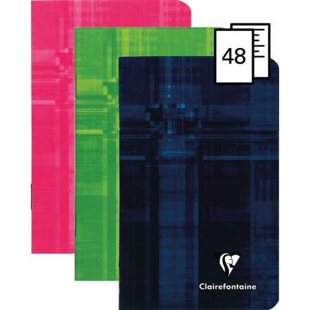 Cahier CLAIREFONTAINE avec réglure couverture laminée, papier blanc, 90 g/m2, couleurs assorties. Durabilité eco:plus: recyclable. Certification: PEFC.