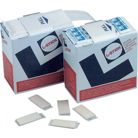 Coussinets adhésifs L-Stick fort pouvoir adhésif, ne jaunissent pas, adhèrent sur toutes les surfaces lisses. Dimensions: L 12 x H 25 mm. Emballage de 100 coussinets.