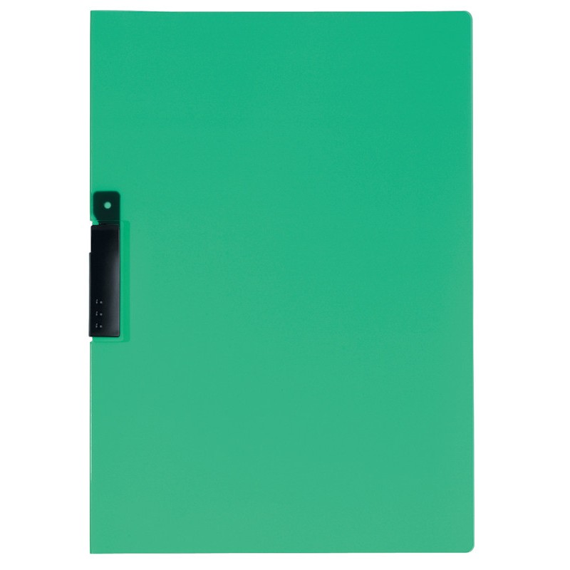 Dossier à pince KOLMA® easy en matériau KolmaFlex semi-transparent, pince noire, extrêmement solide à ouverture latérale et rainure de protection, capacité max. 25 feuilles 80 g/m2, pour format A4. Durabilité eco:plus: construit pour être démontable, recyclable, teneur en déchets recyclés après utilisation max. 100%.