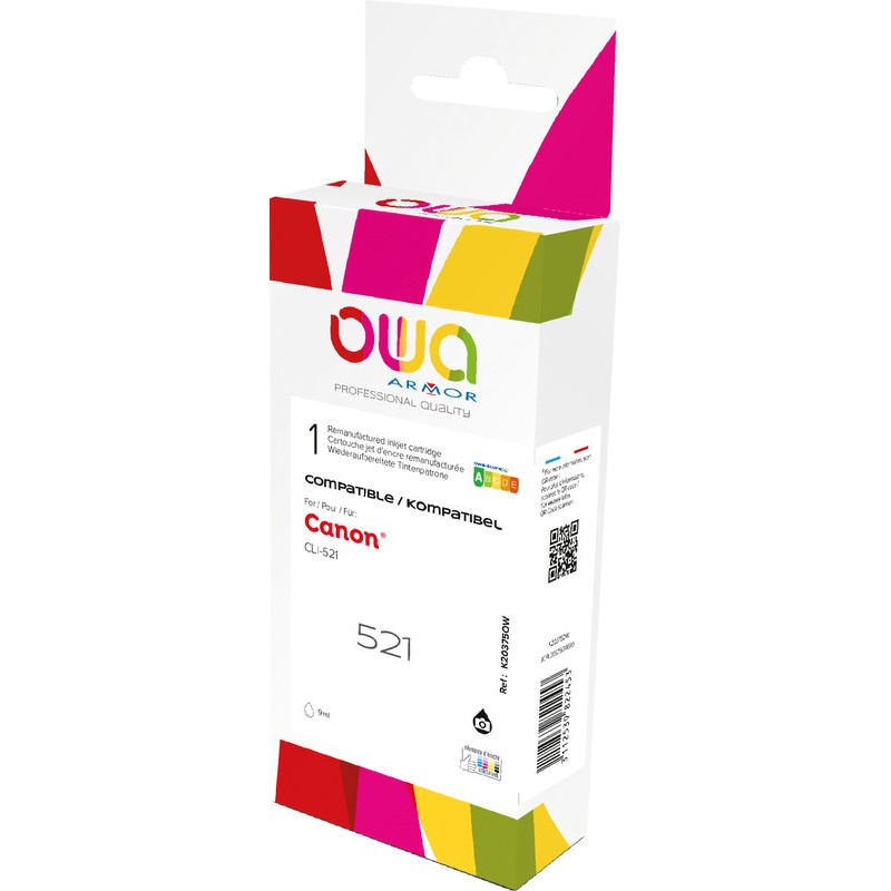 Cartouches d'encre/têtes d'impression OWA pour imprimantes jet d'encre/appareils multifonctions Durabilité eco:plus: construit pour être démontable, recyclable, composant recyclé, teneur en déchets recyclés après utilisation max. 95%, réduction des déchets.