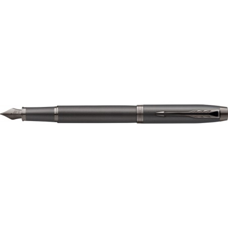 Stylo plume PARKER® IM Monochrome corps, clip et plume en acier inoxydable, couleur de l'encre noire, rechargeable, bec M, présenté dans un étui cadeau élégant. Durabilité eco:plus: durée de vie du produit prolongée.