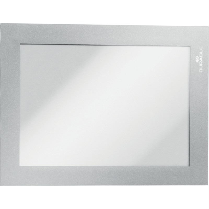 Cadres d'affichage DURABLE Duraframe® autocollants, actualisation simple et rapide des informations grâce au contour magnétique, adhèrent durablement sur toutes les surfaces courantes, se retirent et se repositionnent facilement sur toutes les surfaces lisses et rigides comme le verre, conviennent pour l'affichage d'informations, d'instructions, de tarifs, etc., lisibilité recto verso, s'utilisent au format portrait ou paysage. Emballage de 2 pièces.