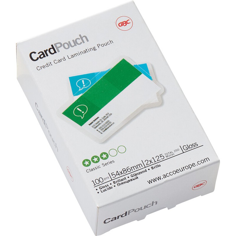 Pochettes de plastification GBC® de qualité premium ouvertes sur 3 côtés. carte de crédit, 54 x 86 mm