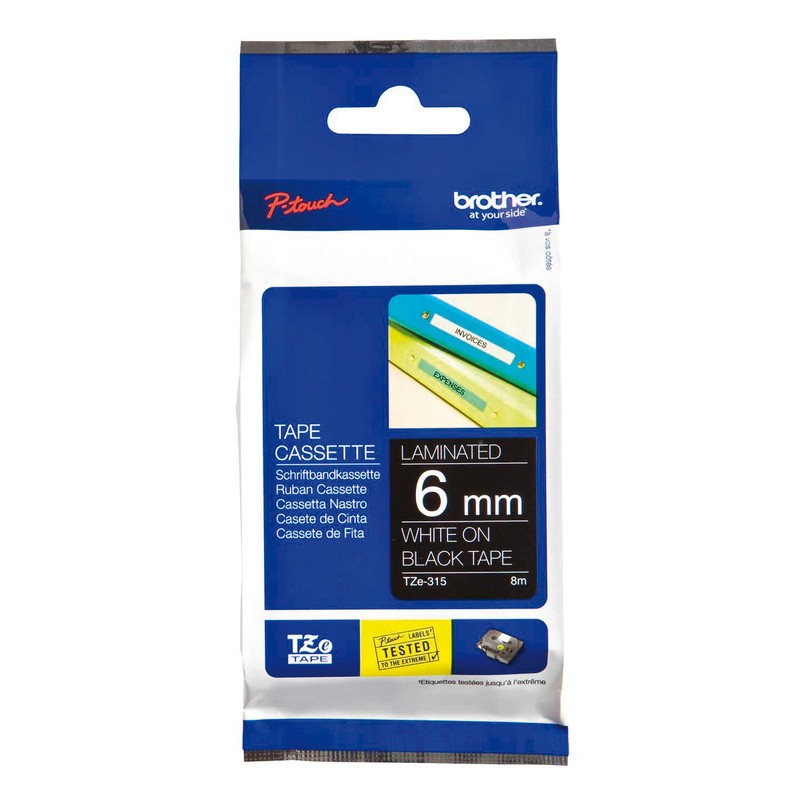 Ruban BROTHER P-touch TZe laminé résiste à l'essuyage, étanche et antirayures, résiste aux températures extrêmes et aux UV, pour la maison, le bureau et le lieu de travail. largeur 6 mm, longueur 8 m