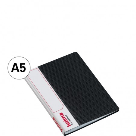 Livre de présentation KOLMA® Selection couverture en PP extrêmement résistant et durable (exempt de substances nocives), surface structurée, bande dorsale en couleur pour inscrire un titre, poches CopyResistant Medium, pour documents comme photocopies, imprimés, etc. Durabilité eco:plus: durée de vie du produit prolongée, recyclable, composant recyclé, emballage respectueux de l'environnement. format A5