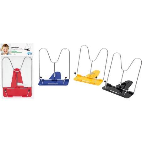 Pupitre de lecture WEDO® exécution en PS/métal, hauteur 169 mm, couleurs assorties, noir, bleu, jaune et rouge.