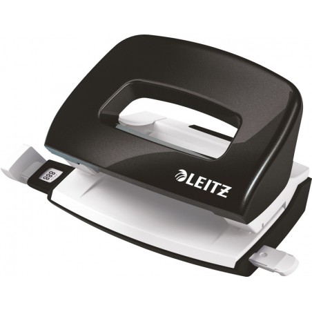 Perforateur (en métal) LEITZ® série NeXXt 5060 WOW mini partie inférieure et poignée en métal robuste, pour écartement 8 cm, perforation Ø 5,5 mm, réglette avec indications du format facilement lisibles et fenêtre de visualisation du format réglé en couleur, poinçons extrêmement bien affûtés, zone de préhension ergonomique (sans prémoulage) pour une perforation confortable, capacité de perforation 1 mm (10 feuilles). Garantie: 10 ans. Certification: GS.