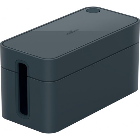 Boîtier range-câbles DURABLE Cavoline® en plastique retardateur de flammes, patins antidérapants, fentes de sortie en caoutchouc sur 2 côtés pour un rangement facile et une ventilation parfaite, pour ranger les câbles, couvercle avec une ouverture arrondie pour le passage d'un câble de chargement de smartphone. Durabilité eco:plus: recyclable. Box S pour une multiprise de 3 prises. Dimensions: L 246 x H 116 x P 128 mm.