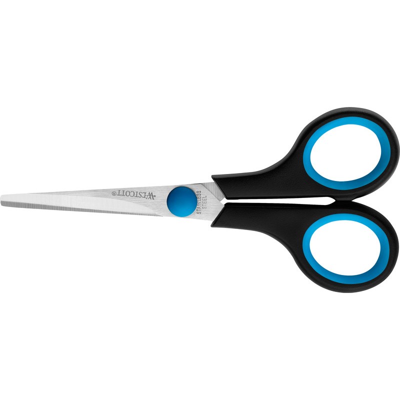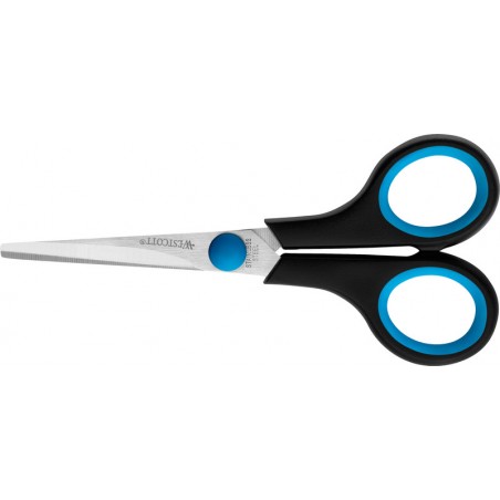 Ciseaux WESTCOTT® Easy Grip pour gauchers lames en acier inoxydable, anneaux noir/bleu ergonomiques avec intérieur en caoutchouc souple.