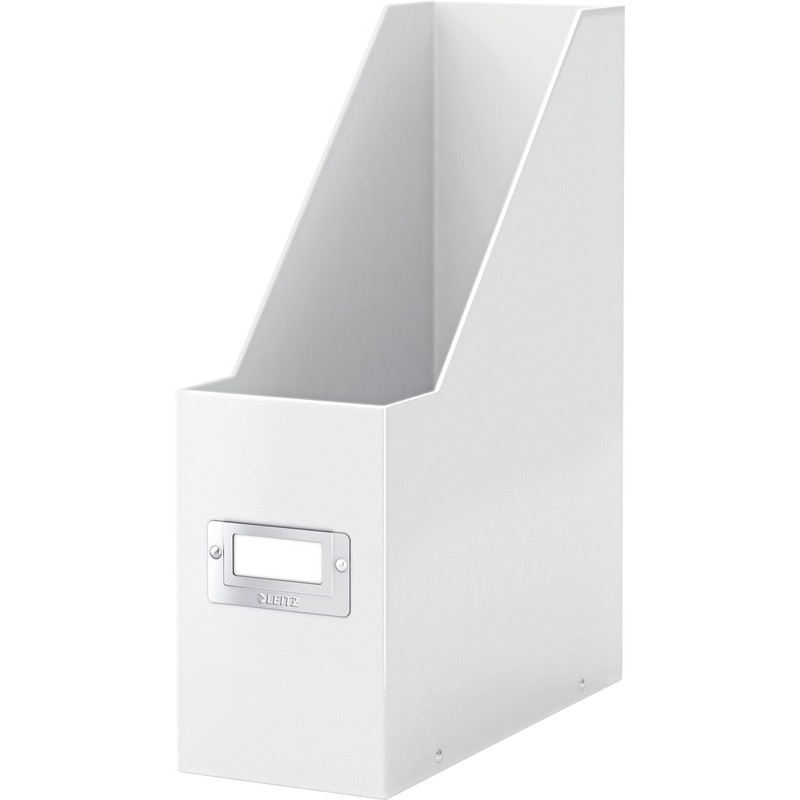 Porte-revues LEITZ® Click & Store en carton rigide laminé PP, avec porte-étiquette à l'avant et à l'arrière avec étiquettes interchangeables, livrée à plat, montage rapide par bouton pression, pour format A4. Dimensions extérieures: L 103 x H 330 x P 253 mm.