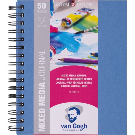 Carnet de croquis VAN GOGH Mixed Media papier à dessin blanc, 160 g/m2, sans lignine ni acide, adapté aux crayons de couleur, à la peinture acrylique, la gouache, l'aquarelle, etc., reliure spirale, 50 feuilles, perforé. Durabilité eco:plus: Certification: FSC.