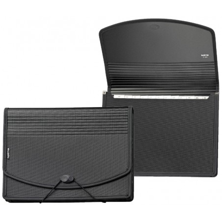 Dossier à compartiments KOLMA® Selection avec fond flexible en PP extrêmement résistant et durable (exempt de substances nocives), surface structurée, avec fond flexible pour plus d'espace, 13 compartiments avec 12 cavaliers pour l'insertion d'étiquettes d'indexage, livré avec étiquettes 1 - 12, A - Z et Jan. - Déc., avec fermeture par élastique/bouton, pour format A4. Durabilité eco:plus: durée de vie du produit prolongée, recyclable, composant recyclé, emballage respectueux de l'environnement.