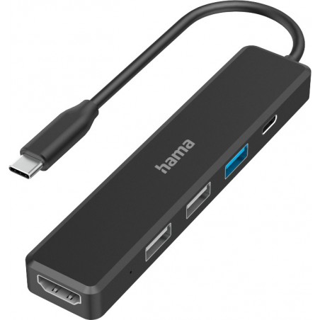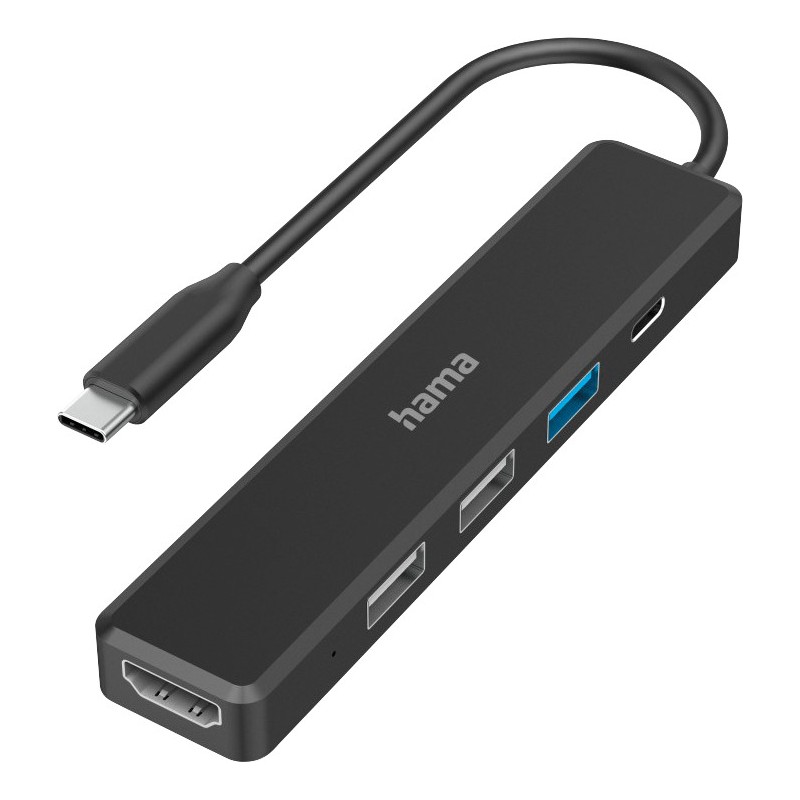Hub HAMA® USB-3.2 Type C 1:5 bus-powered permet de connecter jusqu'à 5 appareils sur une seule prise, transfert des données haute vitesse jusqu'à 5 Gbits/sec., câble de connexion intégré, utilise le port USB-C de votre appareil pour alimenter une prise 4K HDMI, 1 USB-A 3.2 Gen1 (max. 5 Gbit/sec.), USB-C Power-Delivery (max. 5 - 20 V, 3 A - 60 W), 2 USB-A 2.0 (max. 480 Mbit/sec.). Configuration requise: Windows® 7, 8, 10 et 11; Mac OS v. 10.8. ou ultérieure.