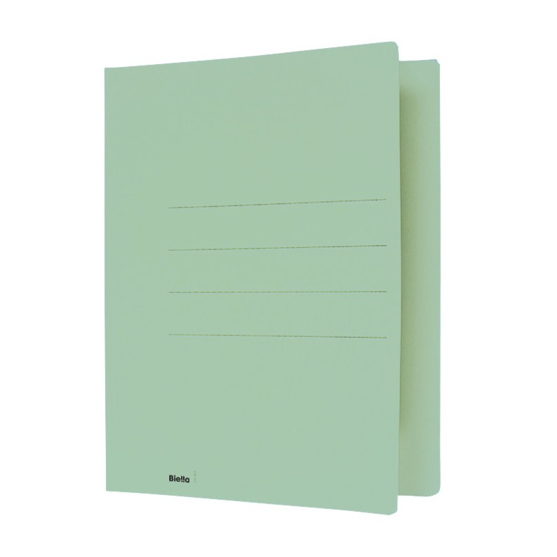 Dossier à insérer BIELLA sans fixation en carton recyclé, 240 g/m2, avec 3 plis, coins arrondis, lignes sur la couverture destinées aux inscriptions, volet antérieur raccourci de 10 mm, format de la couverture 470 x 318 mm, capacité max. 90 feuilles, pour format A4. Durabilité eco:plus: recyclable. Certification: The Blue Angel.