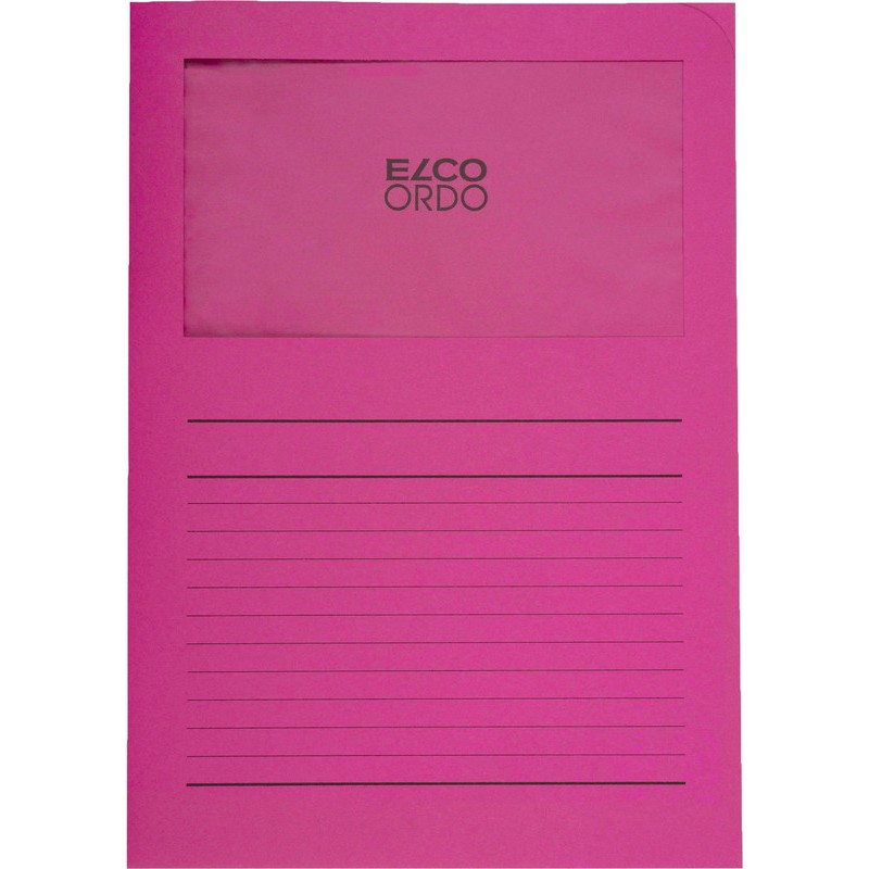 Chemises de classement ELCO Ordo classico en papier, 120 g/m2, format de la pochette 220 x 310 mm, fenêtre transparente format 180 x 100 mm, pour format A4. Durabilité eco:plus: recyclable, composant recyclé. Certification: FSC. avec préimpression boîte de 100 pièces.