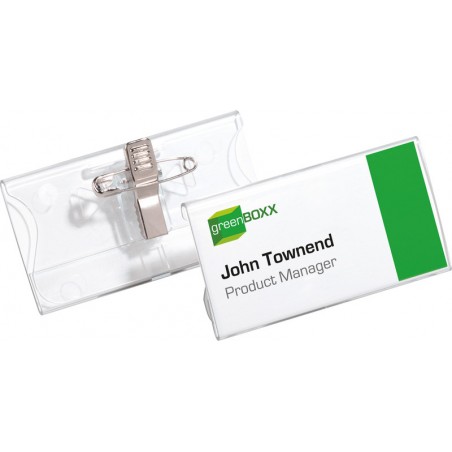 Badges en acrylique DURABLE avec pince combinée languette d'insertion, avec étiquette interchangeable en bristol blanc, épingle et pince, très résistants, sans cadre, inscription facile avec le logiciel d'étiquetage gratuit Duraprint® sur www.duraprint.fr. Emballage de 25 pièces. Durabilité eco:plus: recyclable.
