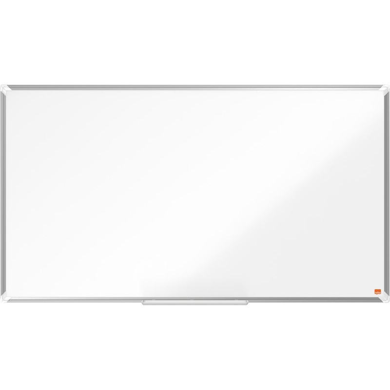Tableau blanc NOBO® Widescreen Premium Plus acier tableau blanc en acier laqué, effaçable à sec et magnétique, avec cadre fin et résistant en aluminium, fixation par les coins, destiné à une utilisation fréquente, l'auget porte-marqueurs s'installe sous le tableau sons déborder sur la surface d'écriture, livré avec un marqueur NOBO® et le kit de fixation. Garantie: 15 ans sur la surface du tableau dans des conditions normales d'utilisation.