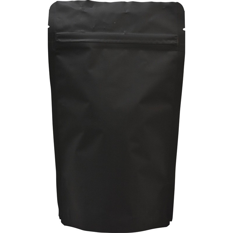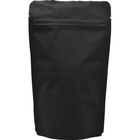 Sachet à fond plat ELCO en papier (face extérieure), revêtement plastifié (face intérieure), surface mate, sans valve, fermeture à glissière, refermable, revêtement en aluminium, fond stable, avec encoches déchirables, convient au contact alimentaire. Boîte de 100 pièces. 125 x 210 mm, remplissage 125 g