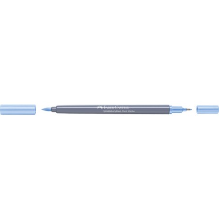 Dual Marker FABER-CASTELL Goldfaber Aqua feutre à 2 fonctions, avec une pointe fine 0,6 mm pour les contours et les détails et une pointe pinceau conçue pour les traits fins, larges et les surfaces pleines, encre à base d'eau, capuchon dans la couleur de l'encre, aquarellable, inodore, sans acide, PH neutre, non rechargeable. Durabilité eco:plus: durée de vie du produit prolongée, energie récupérée, composant recyclé, teneur en déchets recyclés avant utilisation max. 51%, réduction des déchets.