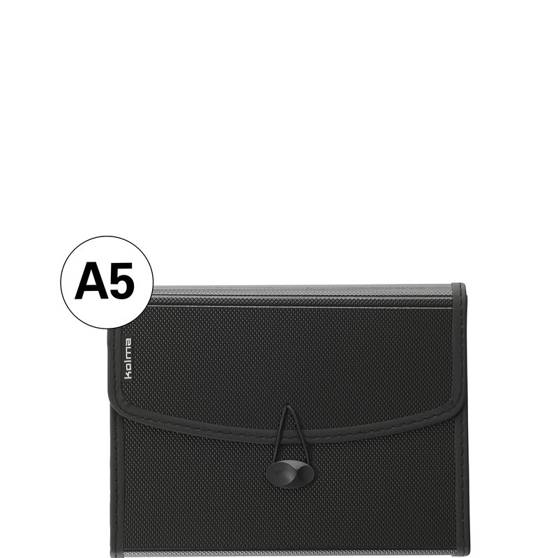 Dossier à compartiments KOLMA Selection en PP recyclé extrêmement résistant et durable (exempt de substances nocives), surface structurée, 13 compartiments avec 12 cavaliers pour l'insertion d'étiquettes d'indexage, livré avec étiquettes 1 - 12, A - Z et Jan. - Déc., avec fermeture par élastique/bouton. Durabilité eco:plus: recyclable, composant recyclé, teneur en déchets recyclés avant utilisation max. 80%, teneur en déchets recyclés après utilisation max. 100%. pour format A5