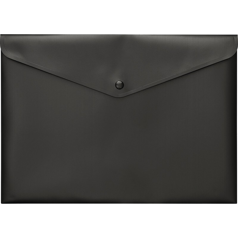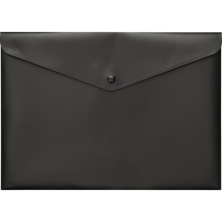 Poche à documents KOLMA® recyclé en PP recyclé noir, insensible aux griffures, opaque, sans PVC, avec fermeture par bouton-pression, capacité max. 50 feuilles. Durabilité eco:plus: durée de vie du produit prolongée, recyclable, composant recyclé, teneur en déchets recyclés avant utilisation max. 80%, teneur en déchets recyclés après utilisation max. 100%. pour format A4