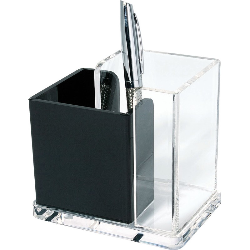 Multipot WEDO® en verre acrylique en verre acrylique transparent combiné avec du noir profond, 2 compartiments. Dimensions: L 120 x H 100 x P 85 mm.