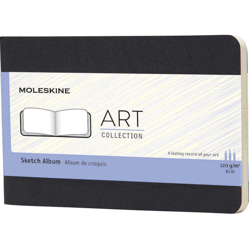 Carnet de croquis MOLESKINE® Art Collection papier à dessin sans acide croquis de couleur ivoire, 120 g/m2, coins arrondis, pages détachables, ruban marque-page, pochette intérieure à soufflet en carton et textile. Durabilité eco:plus: teneur en déchets recyclés après utilisation max. 50%. Certification: FSC.