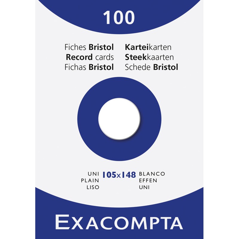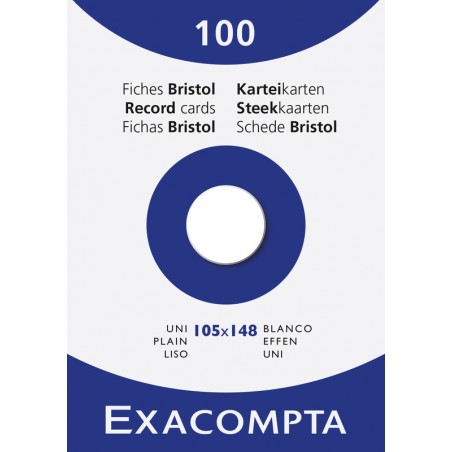 Cartes-fiches EXACOMPTA neutres en carton, 205 g/m2. Emballage de 100 pièces. Durabilité eco:plus: Certification: PEFC.