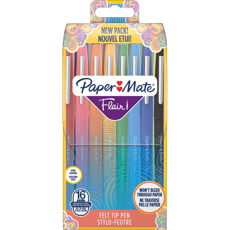 Stylo fibre PAPERMATE® Flair® pointe robuste en nylon, capuchon à fermeture rapide avec clip en métal, encre à base d'eau, séchage rapide, ne tache pas le papier, corps dans la couleur de l'encre, non rechargeable, largeur de trait 0,7 mm. Durabilité eco:plus: emballage respectueux de l'environnement.