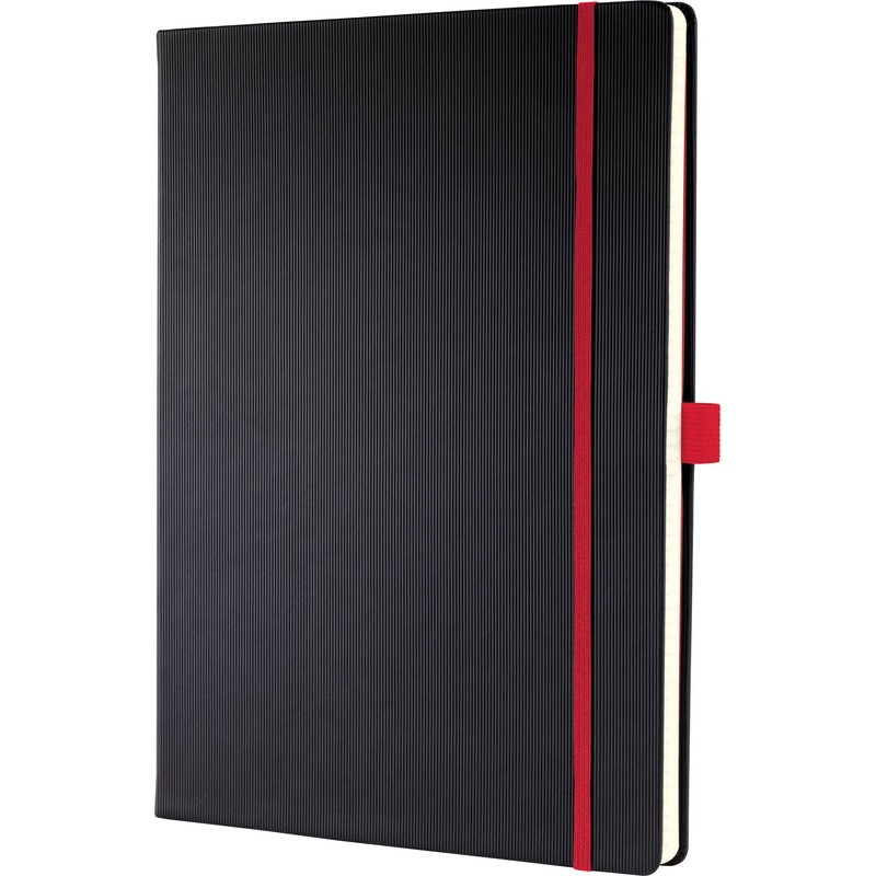 Carnet SIGEL Conceptum Hardcover Softwave Red Edition couverture Softwave, papier chamois, 80 g/m2, 194 pages numérotées dont 20 feuilles perforées, pages de garde rouges, index, 2 rubans marque-page, pochette de rangement avec étui pour 10 cartes de visite, Quickpocket, languette porte-stylo, fermeture par élastique. Durabilité eco:plus: recyclable. Certification: PEFC. env. A4