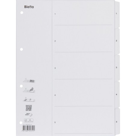 Répertoire plein format BIELLA SmartIndex en carton, 160 g/m2, blanc, onglets renforcés et antitaches, avec SmartIndex repliable visible même avec le dossier ouvert. Durabilité eco:plus: Certification: FSC.