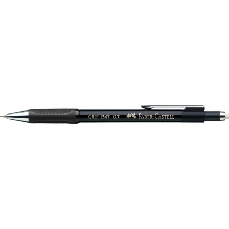 Portemine FABER-CASTELL Grip grip ergonomique en caoutchouc antidérapant, clip en métal, mine montée sur ressort, pointe rétractable, gomme extralongue télescopique. 1347, pour mines 0,7 mm