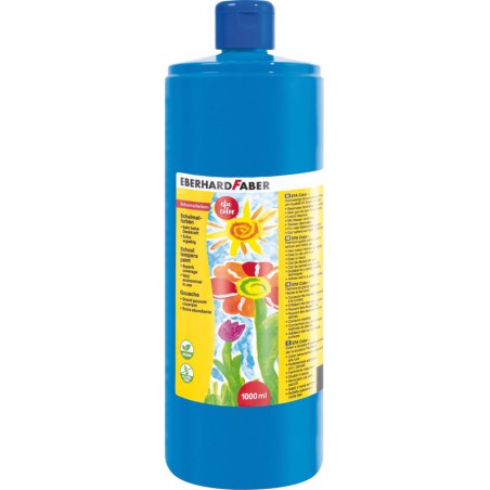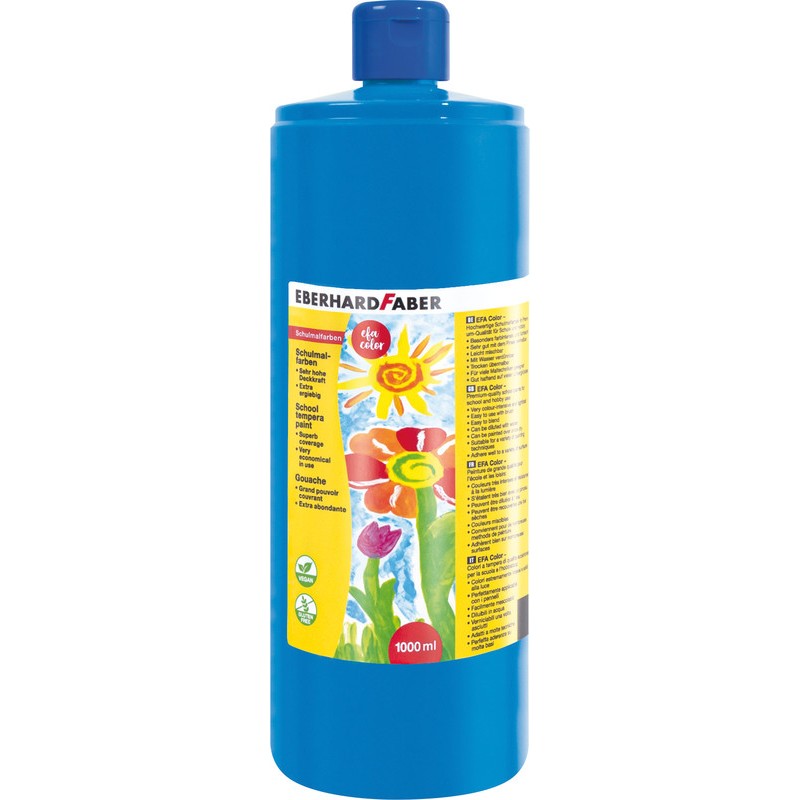 Peintures scolaires EBERHARD FABER EFA Color très fort pouvoir couvrant, séchage rapide, idéales pour le jardin d'enfants et l'école, conviennent particulièrement au papier, mais aussi pour toutes les matières absorbantes et légèrement absorbantes comme le carton et le bois, couleurs lavables sur la plupart des textiles. Bouteille de 1000 ml.