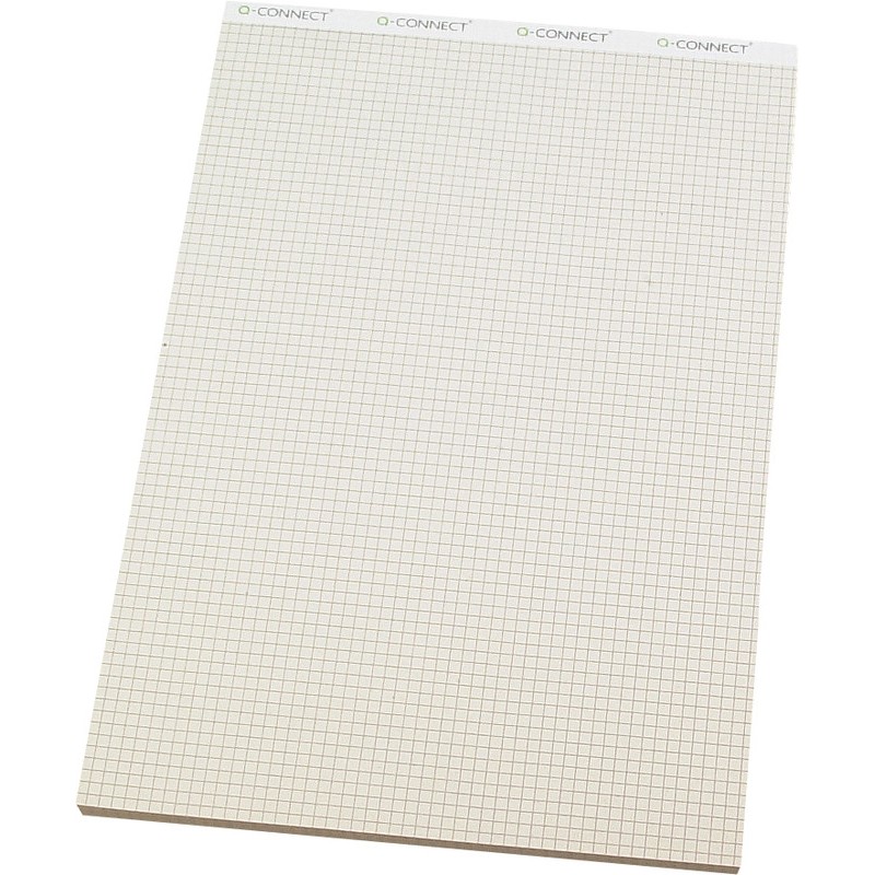Bloc-notes Q-CONNECT® sans couverture Recycling 100% en papier recyclé, gris clair, 65 g/m2, quadrillé 4 mm, 100 feuilles, agrafé sur carton, perforé en tête et reliure en toile. Durabilité eco:plus: recyclable, composant recyclé, teneur en déchets recyclés après utilisation max. 100%.