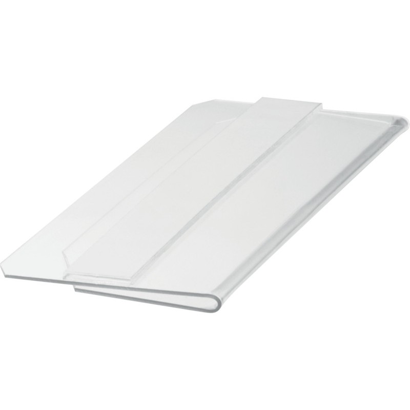 Pochettes signalétiques Hard Cover DURABLE adhésives film rigide transparent en PET, équipées de bandes adhésives au dos, se retirent sans laisser de traces, application sur des conteneurs en plastique, du bois et des cartonnages, scannage des étiquettes possible, n'altèrent pas les documents, changement rapide des étiquettes grâce à la forme biseautée de l'arête avant . Emballage de 10 pièces sans étiquettes à insérer.