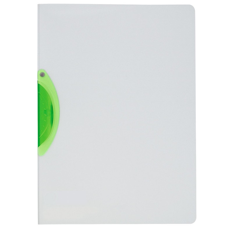 Dossier à pince KOLMA® easy Plus en matériau KolmaFlex semi-transparent incolore, le couvercle antérieur est entièrement rabattable, pince en matière plastique de couleur translucide, capacité env. 30 feuilles 80 g/m2, pour format A4. Durabilité eco:plus: construit pour être démontable, recyclable, teneur en déchets recyclés après utilisation max. 100%.