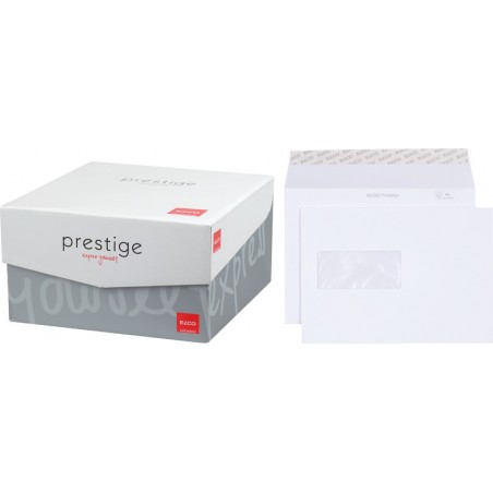 Enveloppes haut de gamme ELCO Prestige, emballage de bureau blanches, fond non imprimé. Durabilité eco:plus: recyclable. Certification: FSC. C5, avec fermeture autoadhésive Optifix® 229 x 162 mm, façon DNG-HK. Boîte de 250 pièces.