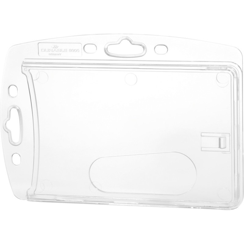 Boîtiers rigides DURABLE pour badges d'entreprise sans attache en PS incassable, protègent de la saleté, accès à la carte facilité par une encoche au dos, peuvent se combiner avec une chaînette, un clip, un ruban textile ou un enrouleur, utilisation au format portrait ou paysage. Dimensions intérieures: L 87 x H 54 mm. Emballage de 10 pièces. Durabilité eco:plus: recyclable.