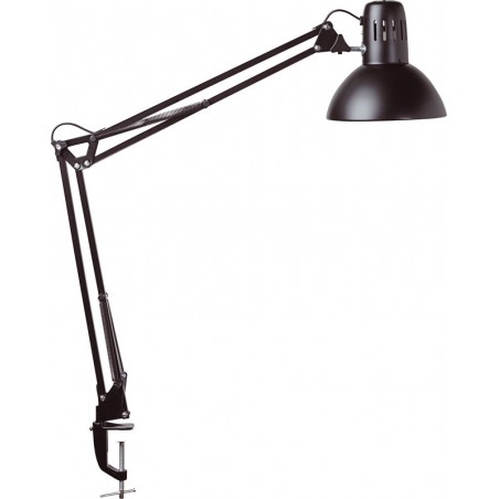 Lampe de bureau LED MAUL study Doppelarm aus Metall, Leuchtenkopf dreh- und neigbar, Schalter am Kabel, hohe Lichtqualität, Reflektor für optimale Lichtausnutzung, geeignet für 9,5 Watt LED-Leuchtmittel, Armlänge 350 mm, Höhe in normaler Arbeitsstellung 440 mm, Kopf Ø 170 mm, mit Klemmfuss aus Metall, Klemmweite bis 55 mm, Kabellänge 1,8 m. Preis inkl. VRG.