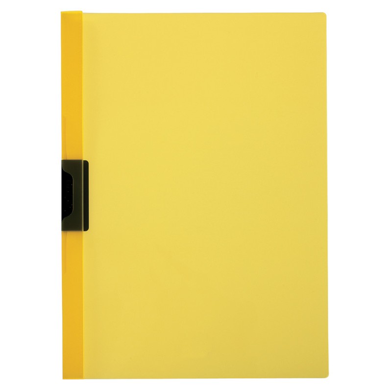 Dossier à pince KOLMA® easy PressQuick en matériau KolmaFlex semi-transparent, couverture antireflet, pince noire munie d'un ressort, capacité max. 30 feuilles 80 g/m2, pour format A4. Durabilité eco:plus: recyclable, teneur en déchets recyclés après utilisation max. 100%.