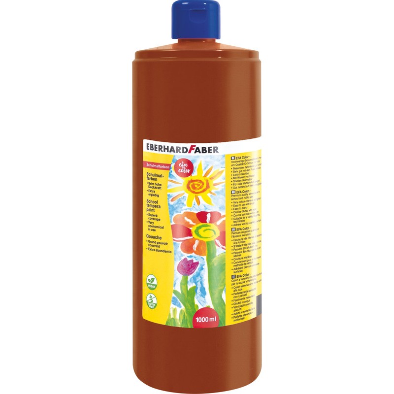 Peintures scolaires EBERHARD FABER EFA Color très fort pouvoir couvrant, séchage rapide, idéales pour le jardin d'enfants et l'école, conviennent particulièrement au papier, mais aussi pour toutes les matières absorbantes et légèrement absorbantes comme le carton et le bois, couleurs lavables sur la plupart des textiles. Bouteille de 1000 ml.