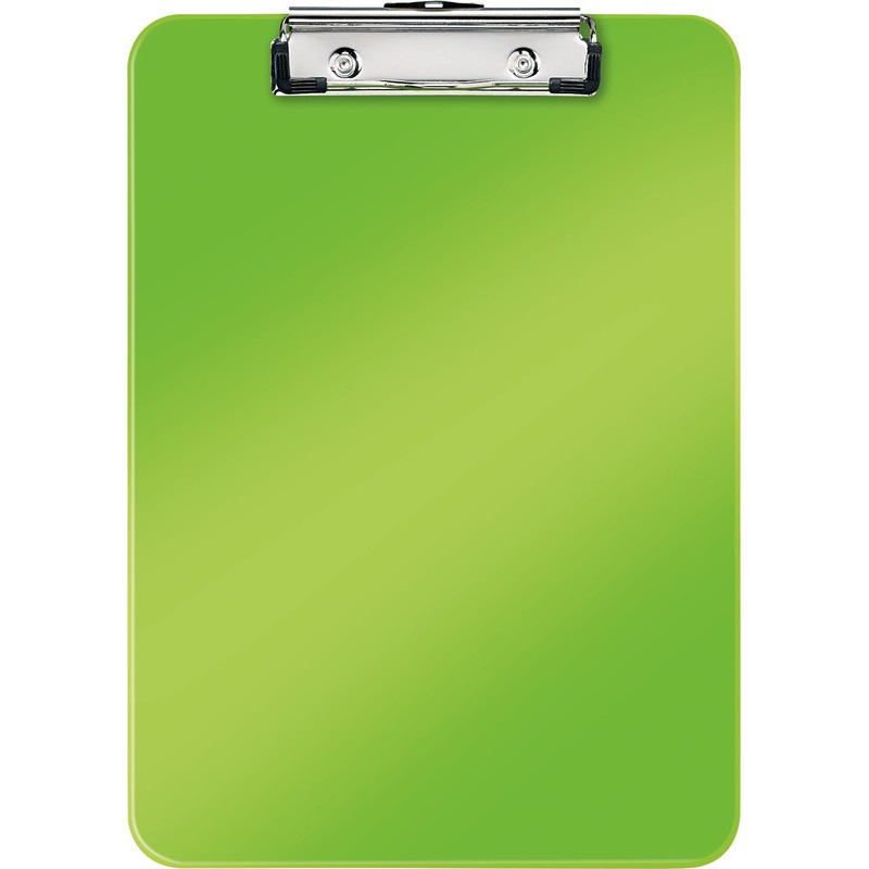 Plaque à pince LEITZ® WOW en PS, 1,7 mm, coins arrondis, pince plate en arceau avec anse de manipulation, avec mécanisme à pince en métal pour max. 80 feuilles, avec patte d'accrochage, pour format A4.