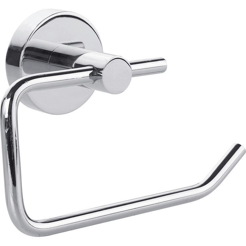Porte-rouleau WC TESA® Smooz en métal chromé, inoxydable, avec technologie TESA® Power.Kit brevetée, amovible, applicable sur le carrelage, le métal, la pierre naturelle, le marbre, le bois, le verre et différents types de plastique. Dimensions: L 100 x H 140 x P 50 mm.