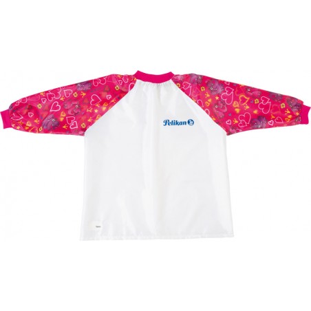 Tablier pour peinture PELIKAN avec manches longues, poignets et col en tissu élastique, fermeture à scratch dans le dos, avec emplacement pour noter le nom, livré dans une pochette pratique, adapté aux enfants de 6 à 9 ans.