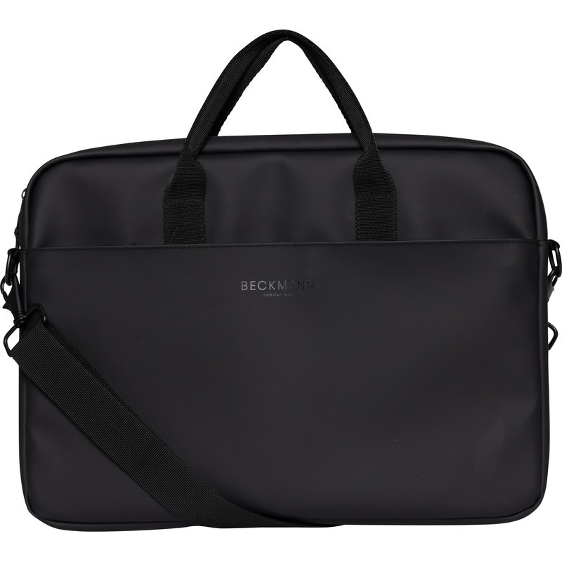Sacoche pour ordinateur portable BECKMANN Street 15' fabriqué avec des bouteilles en PET recyclées (rPET), matelassée, avec zip, bandoulière, dragonne, aide au rangement externe, déperlante. Dimensions: L 300 x H 400 x P 50 mm. Poids: 550 g. Durabilité eco:plus: recyclable. Certification: OEKO TEX®.