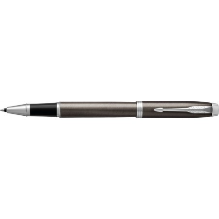 Roller PARKER® IM Dark Espresso finition laque espresso intense brossée, attributs chromés, capuchon avec clip, couleur de l'encre noire, rechargeable, présenté dans un écrin. Durabilité eco:plus: construit pour être démontable, durée de vie du produit prolongée.