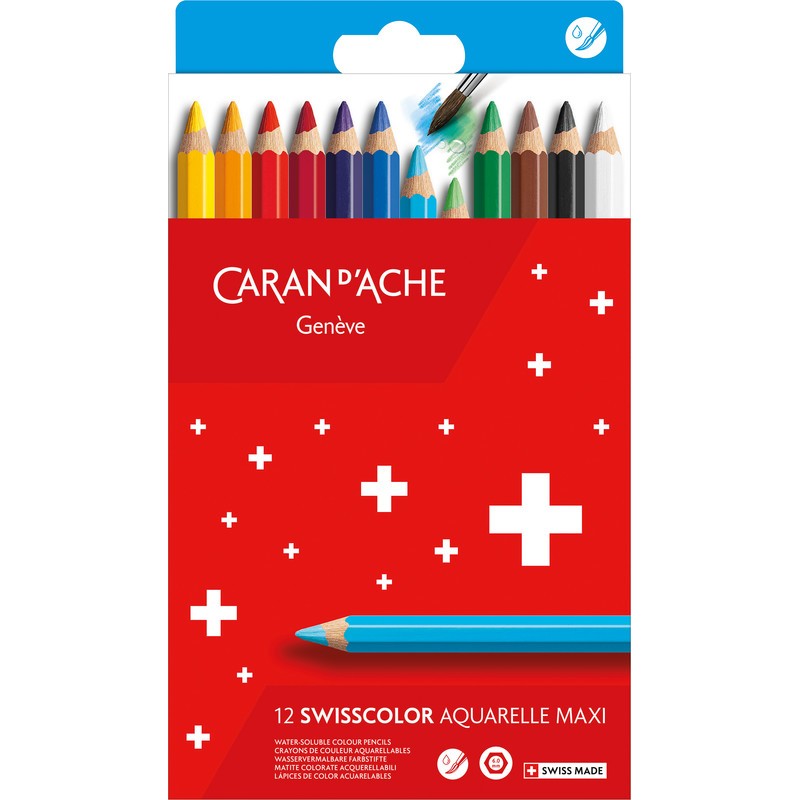 Crayons de couleur CARAN D'ACHE Swisscolor(TM) Aquarelle Maxi crayons de couleur pour le dessin artistique, couleur soluble à l'eau, couleurs résistantes à la lumière, très couvrants, mine Ø 6 mm, convient pour le dessin à sec et humide, l'aquarelle, le dessin de détail et de type peinture, pour les artistes en devenir et les familles, dans étui en carton. Durabilité eco:plus: réduction des déchets, emballage respectueux de l'environnement. Certification: FSC.