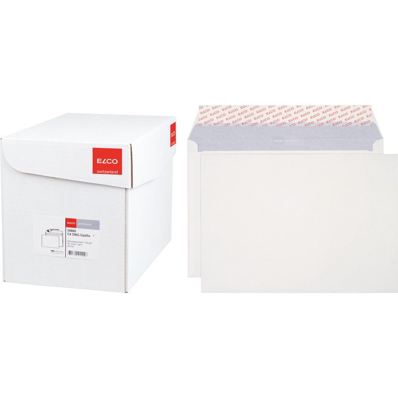 Enveloppes ELCO Profutura, emballage de bureau blanc naturel, 100% en papier recyclé. Durabilité eco:plus: recyclable. C4, avec fermeture autoadhésive Optifix®. 324 x 229 mm, façon DNG-HK. Boîte de 250 pièces. Durabilité eco:plus: Certification: FSC.