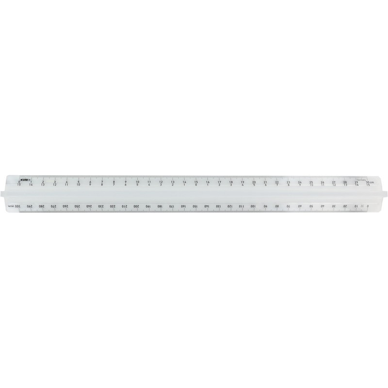 Règle plate KUM® avec poignée en plastique transparent, 2 échelles, avec graduation en mm et 1/2 mm.