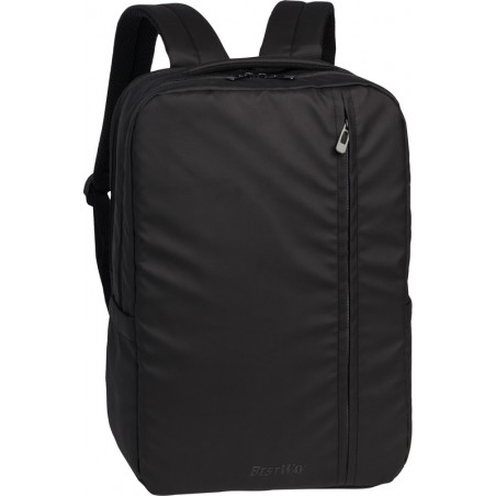 Sac à dos BESTWAY® Sleek en PES, compartiment principal zippé, compartiment pour ordinateur portable, passant au dos, poche frontale zippée, petite poche au dos avec zip, poche latérale à filet, volume 16 l. Dimensions: L 290 x H 420 x P 150 mm. Poids: 520 g. Durabilité eco:plus: durée de vie du produit prolongée.